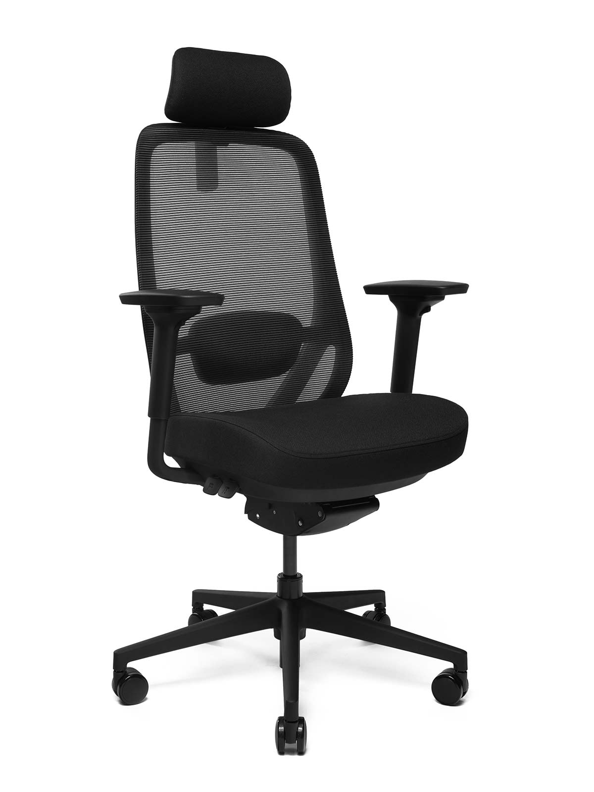 • Rückenlehne: Netzrücken, schwarz, die sich an jede individuelle Anatomie anpasst – angenehm durchlüftet, auch an langen Bürotagen